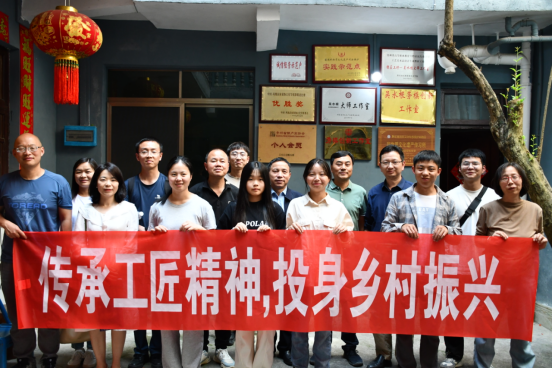 最后,胡张林带领学院师生党员与施洞吴家银匠第八代传人、国家级非物质文化遗产项目银饰锻制技艺(苗族银饰锻制技艺)代表性传承人吴水根座谈,参观了其工作室,深入了解了吴水根充分发挥党员先锋模范作用,给村民传授银饰手艺,带动村民脱贫致富的事迹。吴水根四十年如一日坚守传承,朴实的劳动和勇于创新的工匠精神深深感染了师生党员,也坚定了师生党员充分发挥自己才能、投身于乡村振兴的决心。
