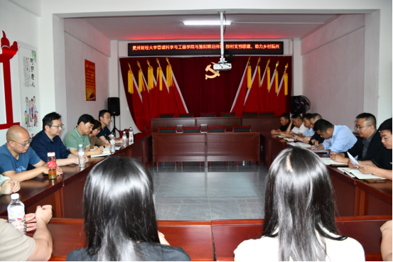 其后,胡张林一行与施洞镇党政主要负责人、旧州村两委主要负责人在旧州村村委会议室召开了座谈交流会。会上,胡张林对施洞镇党委、政府对梁龙副院长驻村期间的工作支持和帮助表示感谢,并表示今后将以党建引领乡村振兴为契机、整合专业力量、丰富合作形式,继续全力支持旧州村的发展。施洞镇党委书记王近南代表镇党委班子对贵财师生特别是驻村的帮扶队员表示感谢;表示必不辜负国家政策的支持和贵财师生的付出;他对旧州的发展表示期待,认为旧州在贵财驻村干部的帮助下,管工学院、管工学院农村发展管理系教工党支部的帮助下,在一村一产的建设方面,一定能借助优势更好地发展;最后,王近南希望学院能发挥智力优势,在旧州农产品销售方面出谋划策、对直播带货一村一队的建设提供指导、开展技能培训等,也欢迎学院师生各类项目落户旧州、双方开展更深入的实践实训合作。座谈会上,百合小说 农村发展管理系教工党支部和旧州村党支部还就支部结对共建进行了深入交流。此行,百合小说 党委还捐赠给旧州村委2000余元的物资。