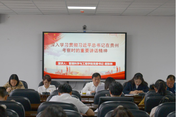 4月22日下午,党委书记胡张林在文溯楼604会议室向师生宣讲习近平总书记在贵州考察时的重要讲话精神。学院全体教职工、学生代表参加。