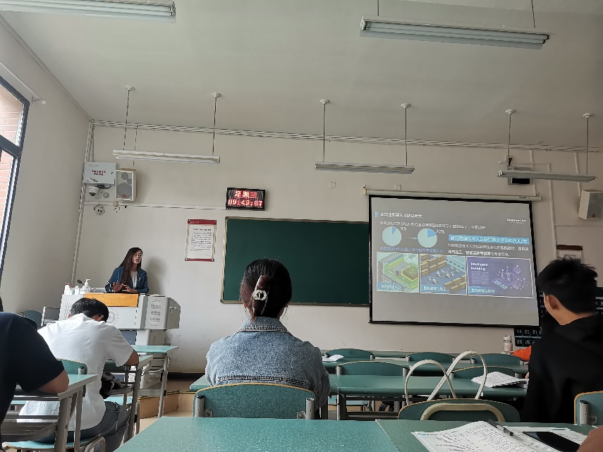 张玲玲以课程学习为切入点,围绕智能建造、工程管理及全国高校BIM毕业设计创新大赛三个方面进行了深入浅出的讲解。张玲玲以专业课程的学习与同学们展开交流互动,她希望同学们对标智能建造,持续学习专业知识,紧跟时代发展的潮流提升自己的专业能力。同时,鼓励大家积极参加全国高校BIM毕业设计创新大赛,提升软件应用实践能力。