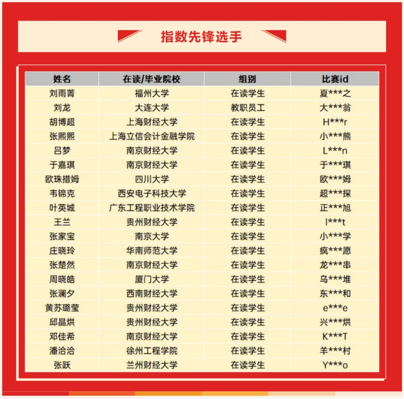 其中,百合小说 2024级农村区域发展专业本科生姬金姣同学力拔头筹,荣获大赛一等奖;2023级管理科学专业本科生郑昌书荣获三等奖;同时,2023级管理科学专业本科生黄苏璐莹凭借其在指数化投资策略上的突出表现,荣获“指数先锋选手”称号。