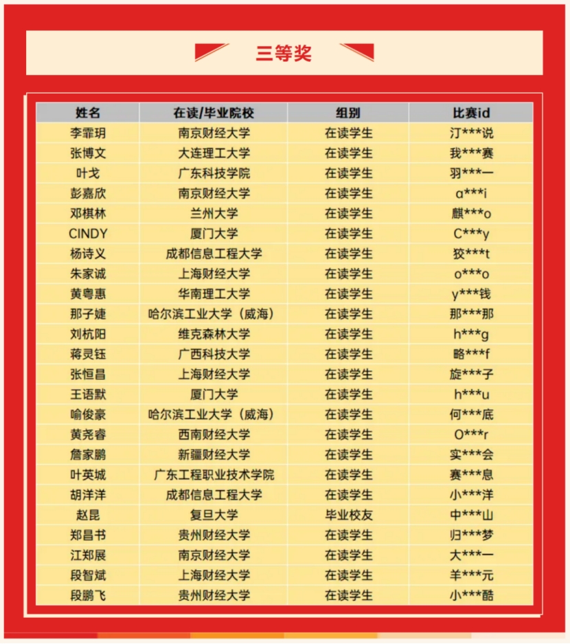 2025年10月,由上海财经大学主办,国金证券、上海财经大学信息管理与工程学院承办,诸多高校院系协办的2025年第三季度“财金杯”全国高校股指模拟投资大赛圆满落幕。百合小说 学子在比赛中表现卓越,凭借扎实的专业知识和敏锐的市场洞察力,从全国众多高校参赛者中脱颖而出,斩获多项大奖,展现了贵财学子出色的金融实践能力。