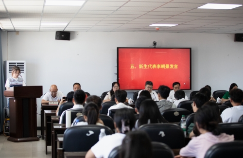 随后,学院党委书记胡张林发表了讲话。胡张林从坚定理想信念、恪守学术道德、适应身份转变等方面对新生们提出了殷切期望和要求,希望同学们能秉承校训院训精神,明确目标,合理规划研究生阶段的学习与生活,做到德智体美劳全面发展。