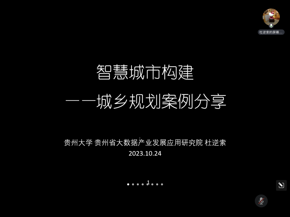 讲座以线上的形式开展,杜逆索从智慧城市的基本定义、特征、人工智能、组成体系等方面阐释了智慧城市的实质和相关知识。接着他从新的视角介绍了智慧城市构建的一般体系架构框架,并分享了“工程监管”、“数据服务平台”、“通村村”、“精准扶贫”、“民生服务”等智慧城市平台构建案例。最后,杜逆索对智慧城市构建理论逻辑进行了总结,强调建设智慧城市在实现城市可持续发展、引领信息技术应用、提升城市综合竞争力等方面具有重要意义。