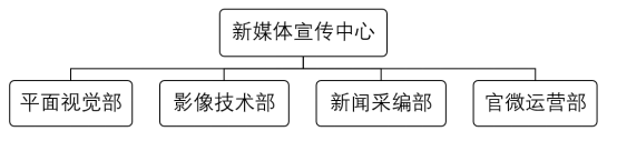 新媒体宣传中心设立平面视觉部、影像技术部、新闻采编部、官微运营部五个部门。设主任一名,副主任三名共同管理日常各类宣传事务,影像技术部设置部长一名,副部长两名,其余各部门设置部长、副部长各一名。