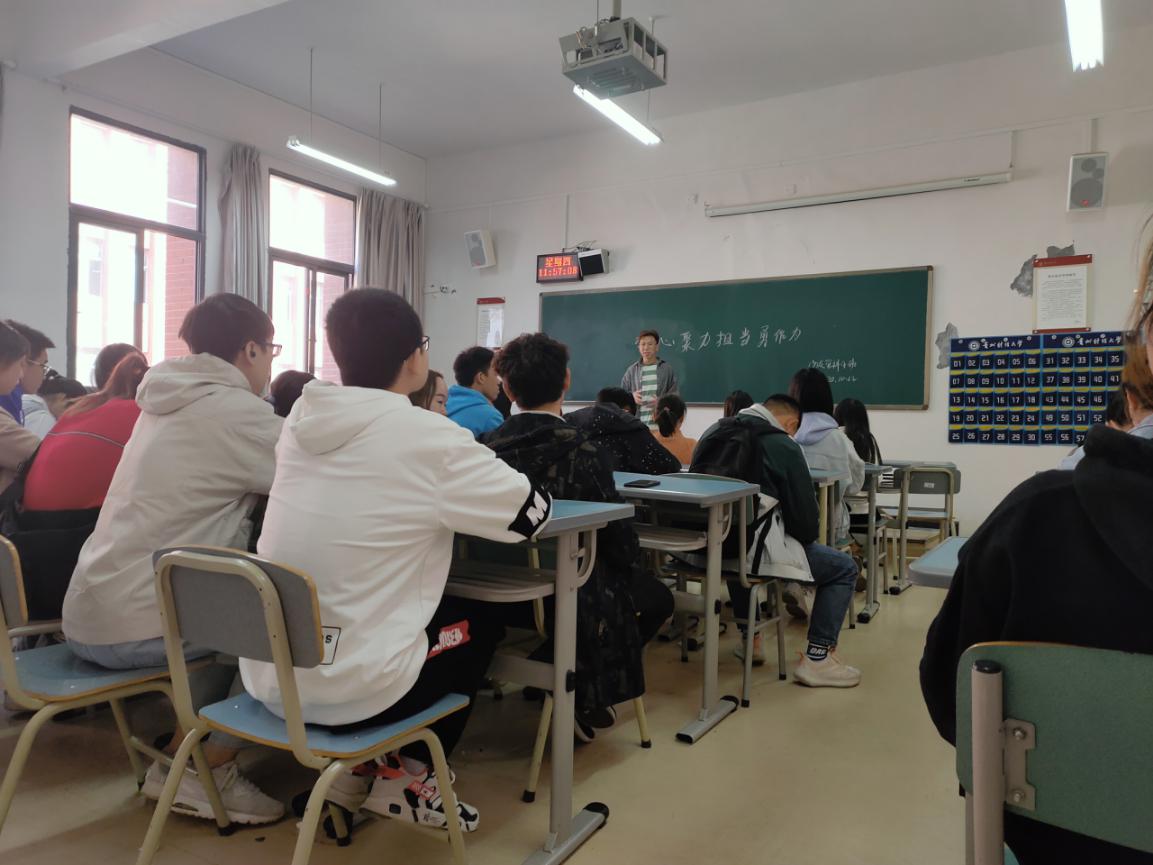 四班团支部于2020年10月22在博学楼1-8开展“凝心聚力前行勇担当”主题团日活动。此次主题团日活动由周道主持,全班参与。