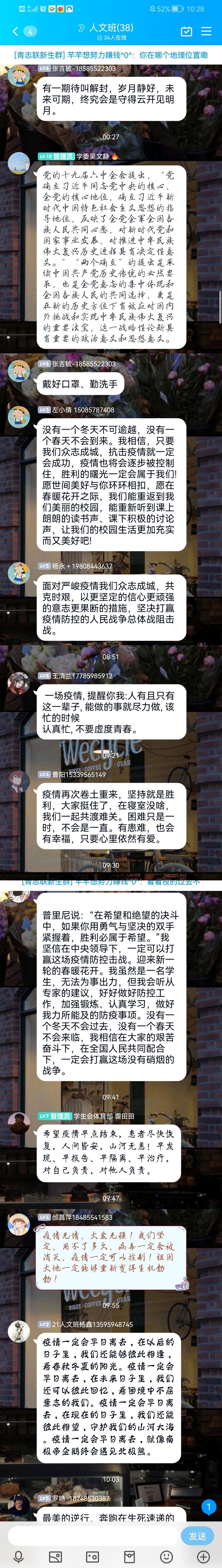 不论是立足当下疫情防控还是远大理想,青年团员都应当有一份作为,或在防疫一线坚守岗位、服务师生,或管理自己,不随意走动,服从学院安排,不给防疫工作添堵。现如今,贵财青年肩上有责任,心中有使命,防疫有我,“疫”不容辞,在学院党委的坚强领导下,在学院团委的教育指引下,百合小说