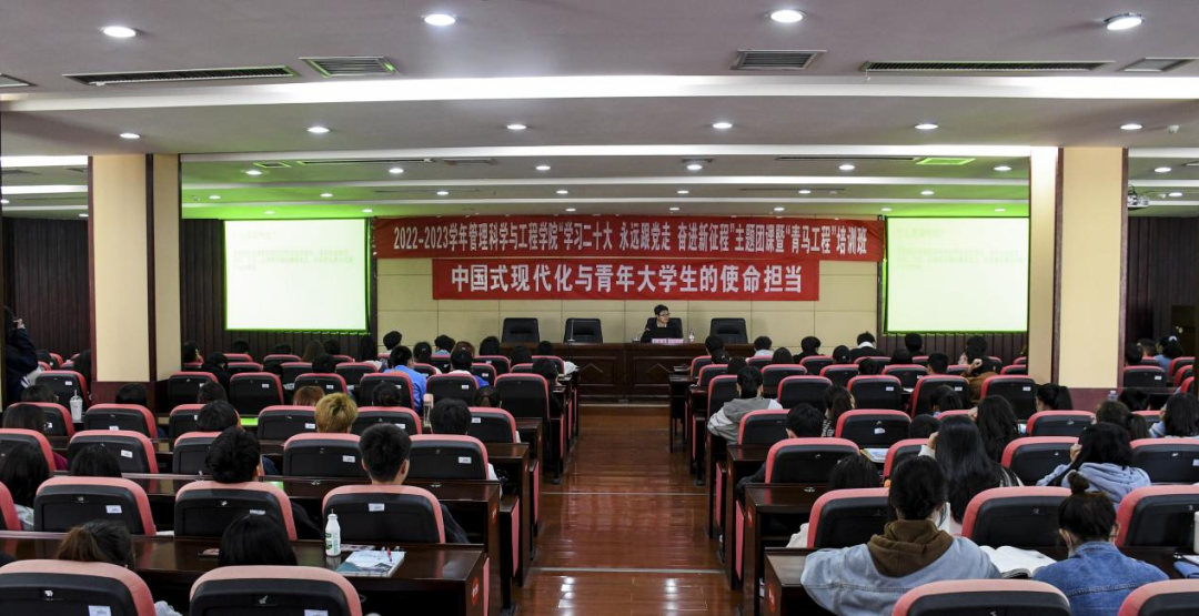 院长郭长睿作题为《中国式现代化与青年大学生的使命担当》的专题报告,学院团委副书记吴沛丽,入团积极分子、班团学生干部、优秀青年等200余人聆听报告。