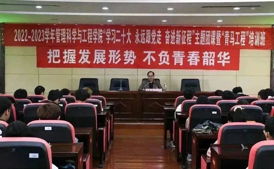 党委书记邵新顺作题为《把握发展形势,不负青春韶华》的专题报告,学院团委副书记吴沛丽,入团积极分子、班团学生干部、优秀青年等200余人聆听报告。