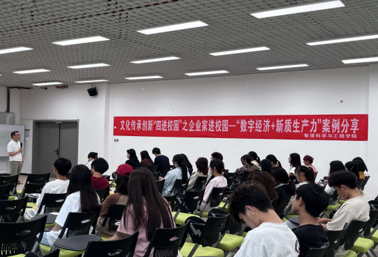 “儒魂锻铸”下午茶│文化传承创新“四进校园”之企业家进校园——“数字经济+新质生产力”案例分享深度交流活动在文正楼107举行。本次活动特邀贵州东彩供应链科技有限公司董事、民行股权投资基金CEO、贵州省乡村振兴战略研究院研究员刘东亚作为主讲嘉宾,活动由学院副院长刘金林主持。