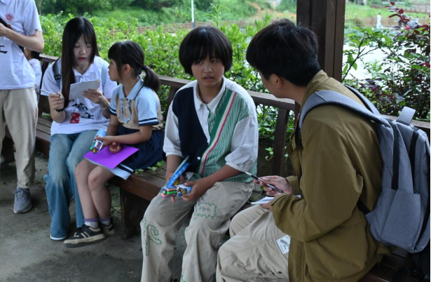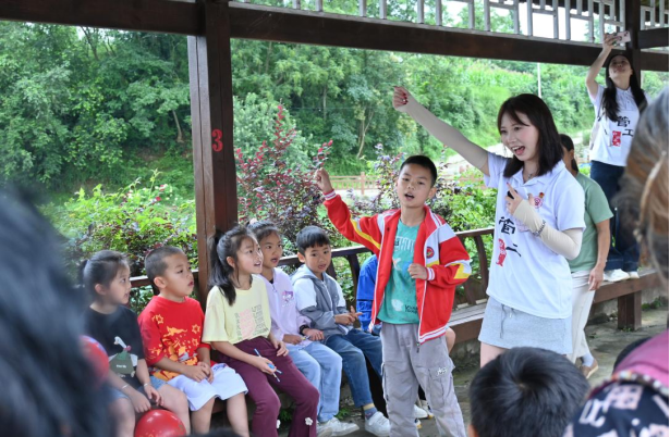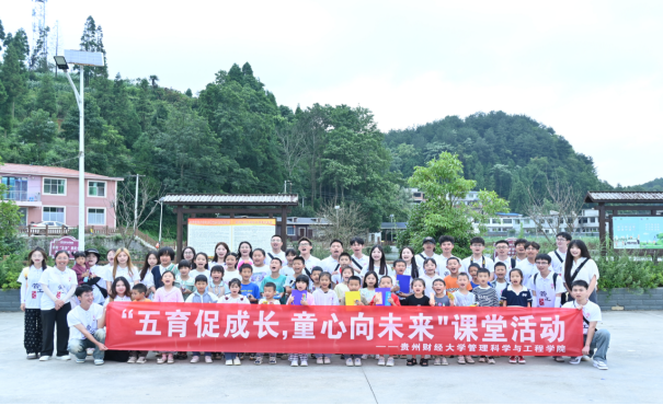 “情系花蕾,梦照未来”实践队来到贵阳市花溪区麦坪镇刘庄村,傅璟、吴浪莎两位老师带领31名实践队队员为刘庄村的孩子们开展了一场以“五育促成长,童心向未来”为主题的课堂活动。