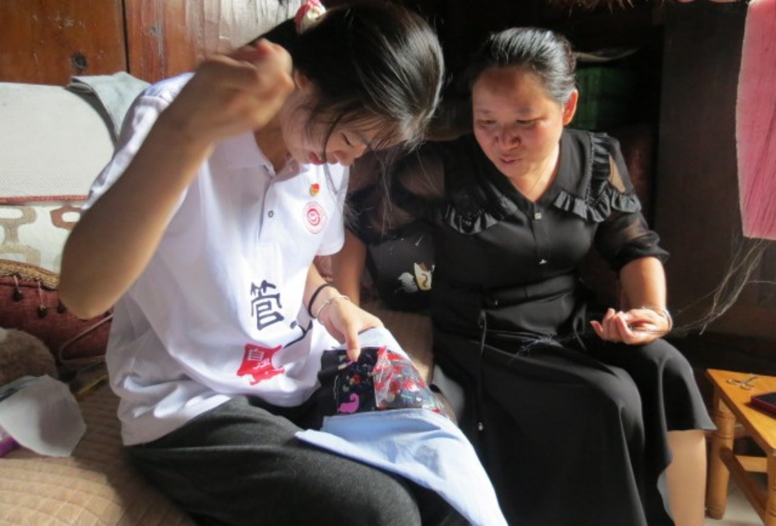 最后,实践团成员还拜访了当地刺绣手艺人。通过系统了解从选料、配色到针法运用的全流程,成员们近距离感受以针代笔、丝线作画的指尖艺术。成员们在刺绣手艺人的指导下,拿起刺绣所需工具,亲身体验了传统刺绣技艺,感受到了传统刺绣的魅力。