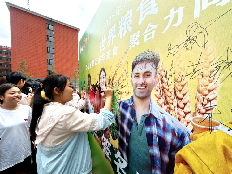 知识答题环节成为全场焦点。同学们参与热情极高,大家纷纷拿出手机认真作答,在轻松互动中了解粮食安全知识,体悟粮食安全的重要性。获得答题奖品的同学们纷纷在签名墙前打卡留影,成为现场一道清新亮丽的风景。