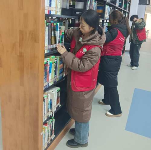 的志愿者们身穿红色志愿服,齐聚西区图书馆,以“共承书香底蕴,彰显志愿初心”为主题,开展了一场暖心的志愿活动。用实际行动传递爱护图书、文明阅读的理念,并为同学们打造更为舒适、整洁的阅览环境。
