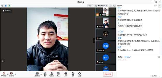 通过腾讯会议APP开展线上应征入伍宣讲会,特邀校武装部何祖星老师为各位同学宣讲政策和答疑,学院各年级学生代表以及准毕业学生参加。