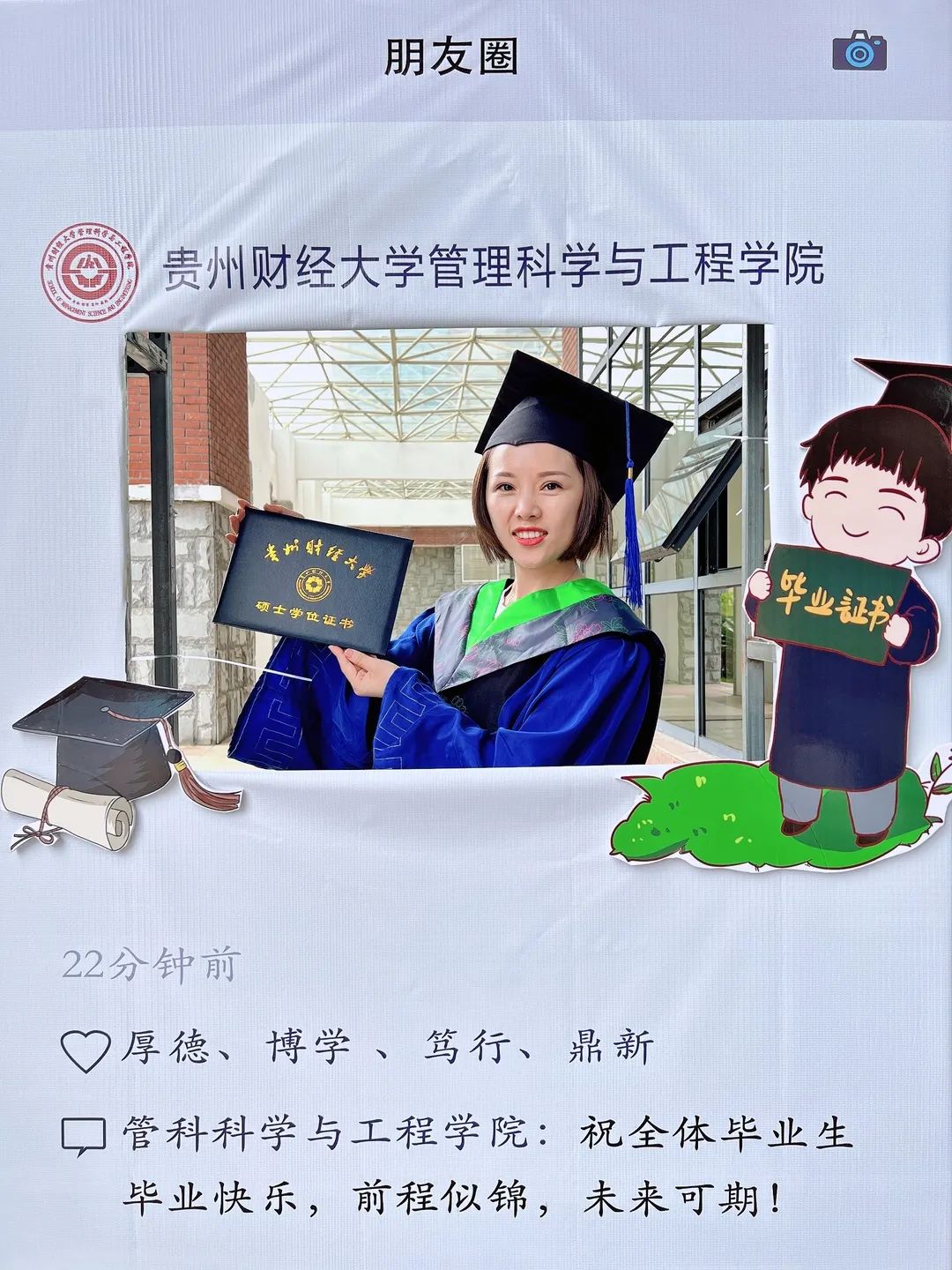 大学的旅途即将落下帷幕,毕业生们将迎来新的生活,在这里祝愿毕业生们,前程似锦,不忘初心,未来可期。