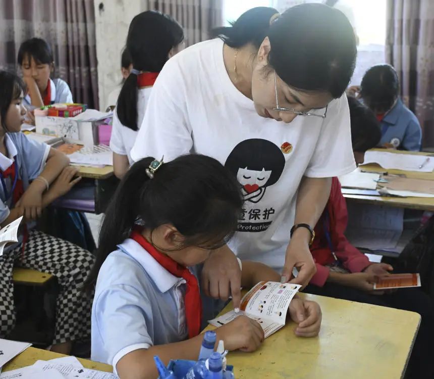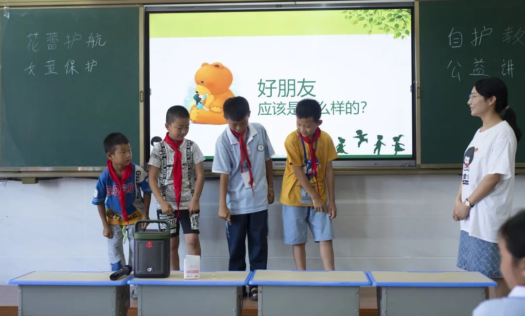 团队讲师志愿者、此次暑期“三下乡”实践队带队老师吴沛丽为中心小学近90名余同学上了主题为“爱护我们的身体——防性侵安全教育公益课”,共同参与活动的有杨千、李然等8名学生志愿者。