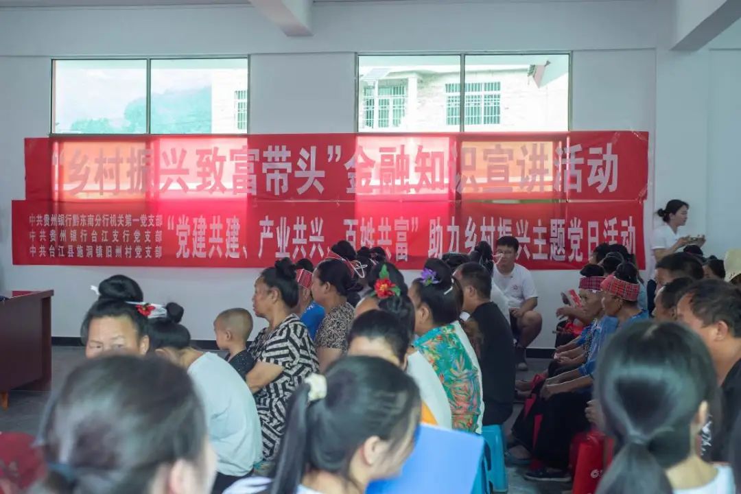 “星火乡筑”暑期“三下乡”社会实践团联合贵州银行台江支行工作人员组成金融知识宣讲队,于台江县施洞镇旧州村开展金融知识宣讲活动,将金融知识送进农户中。