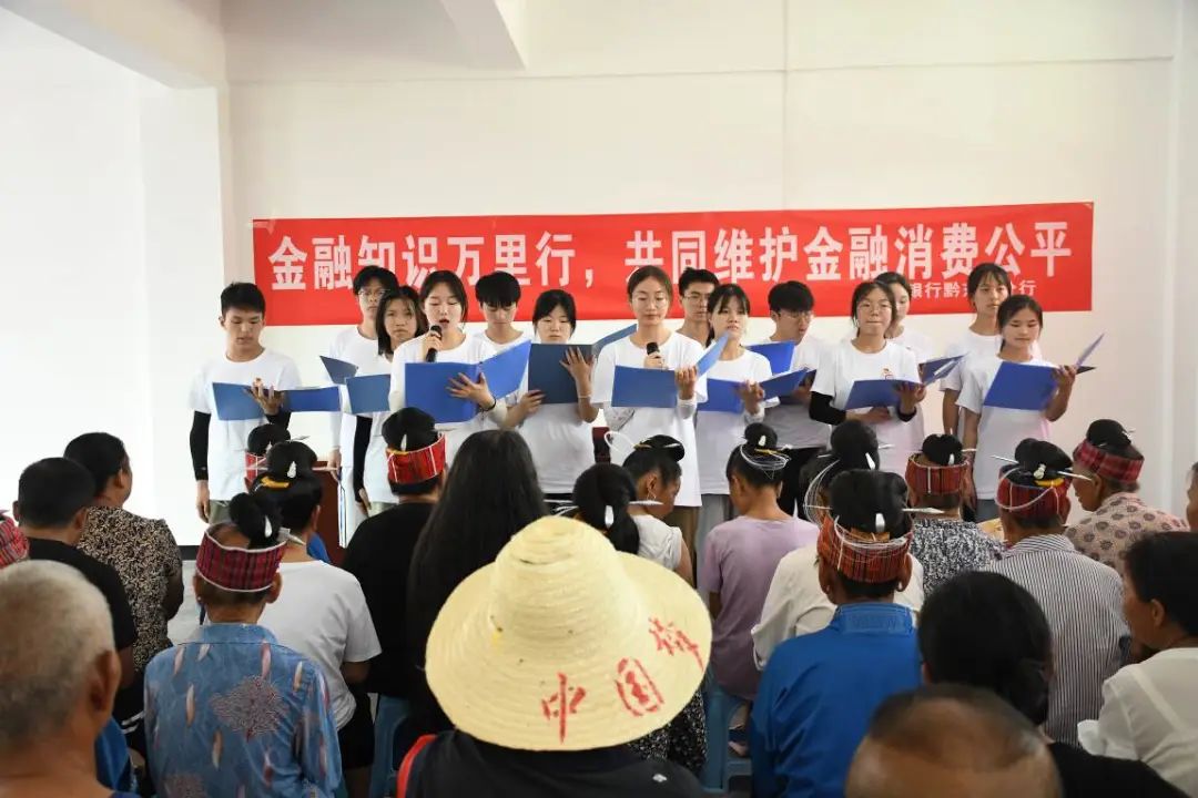 暑期“三下乡”“星火乡筑”实践团为当地村民带来朗诵节目——《仰望党旗》,紧接着贵州银行台江支行工作人员向村民们讲解有关货币、投资、保险和金融机构等基本概念,同时普及了存贷款、银行卡安全知识以及如何进行低风险理财等知识,为村民们答疑解惑,帮助村民们提高金融风险防范意识。除此之外,成员们还宣传了电话诈骗、冒充亲友要求转账、非法集资诈骗等多种常见的诈骗方式,向村民们耐心讲解识别金融诈骗、保护个人信息的重要性。最后,实践团队员向村民们分发肥皂、牙刷等小礼品,现场宣传气氛热烈,村民积极参与其中。