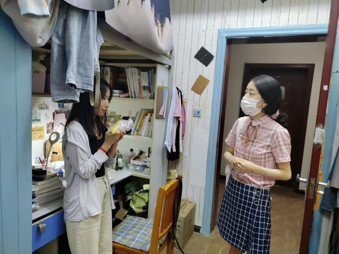 “同学们有什么困难没有?”“一切都调整过来了吗?”“网课学习大家是否都能熟练?”······深入聊天中,王茜与同学们进行了亲切的交流,交流进入新环境所遇到的问题,热切地关心同学们是否能够习惯新学校。在走访过程中遇到问题及时为同学们解决,便于新同学更好的适应新的居住环境。细心询问同学们各方面的需求,了解同学们的诉求,以及线上学习和疫情生活中遇到的困难,希望同学们能够以良好的精神面貌投入到未来的学习中,并着重嘱咐同学们疫情期间严格遵守学校疫情防控要求。