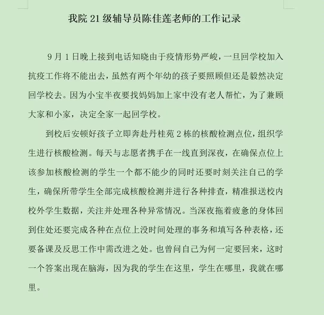 学生科负责人李炳芳老师每天精准高效统计报送学院学生数据,家里的小女儿过生日也不能回去陪伴,女儿还懂事的给妈妈画了一幅画“贵阳加油,妈妈,早日回家”;百合小说