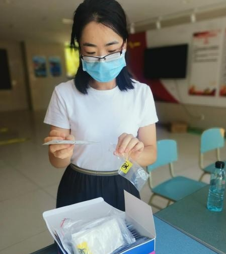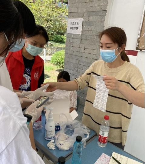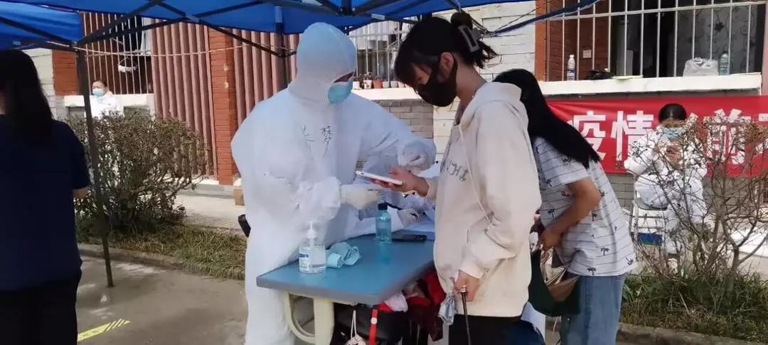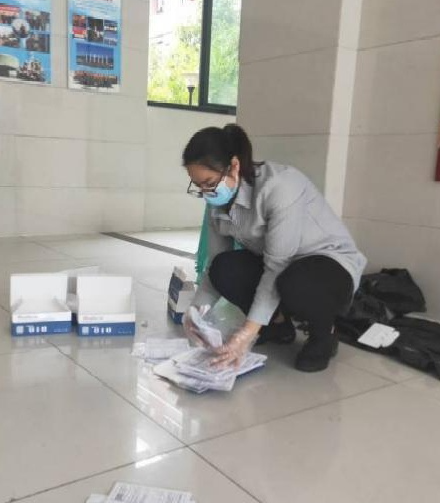 原党委副书记王茜每天组织志愿者详细交代工作、认真核查医疗物资、进行数据核查,强调注意事项,确保每天负责的点位楼宇核酸检测或抗原检测高效准确完成。