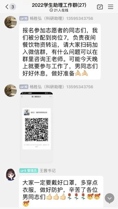 已有11名教师利用课余时间去做志愿服务,充当起了学校的后勤保障人员和所在社区志愿者。其中,刘金林、刘云龙、陈明曼、聂淼4位老师担任学校公租房博士楼核酸检测和抗原检测志愿者,姜玉勇、兰晨、赵振宽、张克新、胡贤旭等5位老师积极充当起学校后勤保障工作人员;未能返校的邓兵、李小天2位老师也积极参与到所在社区的疫情防控志愿工作中。无论校内还是校外,学院领导、辅导员、行政人员、专职教师、科研助理都以不同的工作形式积极投入到当前的疫情防控当中,他们“亮身份、当先锋、做表率”,主动扛起疫情防控责任,用实际行动践行管科学院教师的担当作为。