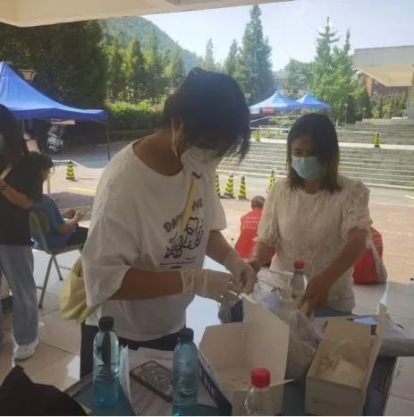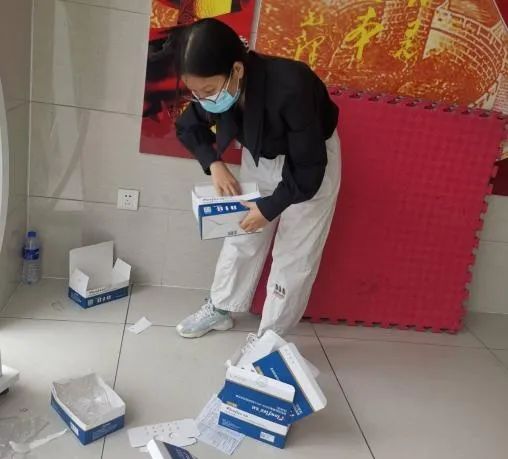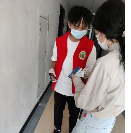 21名学生志愿者们冲锋在前,留下最美志愿者的身影。“咚咚咚...”“您好,打扰了!同学,抗原检测物资给你们放在门外了,你们等下记得拿!”志愿者们一层又一层地爬楼,一间寝室又一间寝室地敲门,他们挨个寝室为同学们分发检测试剂,核对数量,确保在最短时间内帮助同学们完成新冠病毒抗原自测,细心叮嘱。在检测结束后,志愿者们又统一上门回收处理。