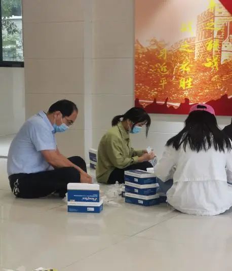 作为樱花苑1栋点位长,院党委书记邵新顺化身“流水线工人”,席地而坐是其常态工作写照。在工作中,他时常强调“防疫物资来之不易,越是细碎越要精准,检测结果和数据上报要保证家底清、数据准、效率高,容不得半点马虎”。