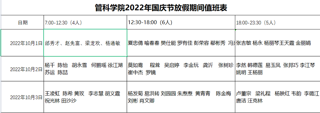 共有12位老师,9名科研助理和60多名学生志愿者放弃假期,坚守防疫一线,无论是天刚亮的早班,还是夜渐深的晚班,轮番值守,各就其位,在学院值班点位上值守,维持现场秩序,查验健康码、行程码和核酸检测结果,做好数据登记,做好消杀工作,让大家欢度国庆的同时对疫情防控也做到精准到位。