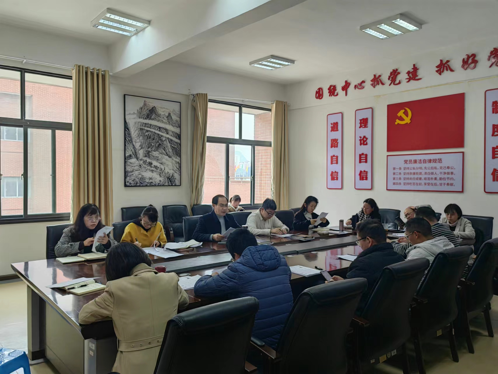 信访维稳暨安全稳定研判调度会会议精神》;魏媛传达学习了《省政协十三届一次会议精神》;李恩东传达学习了《事业单位工作人员考核规定》。