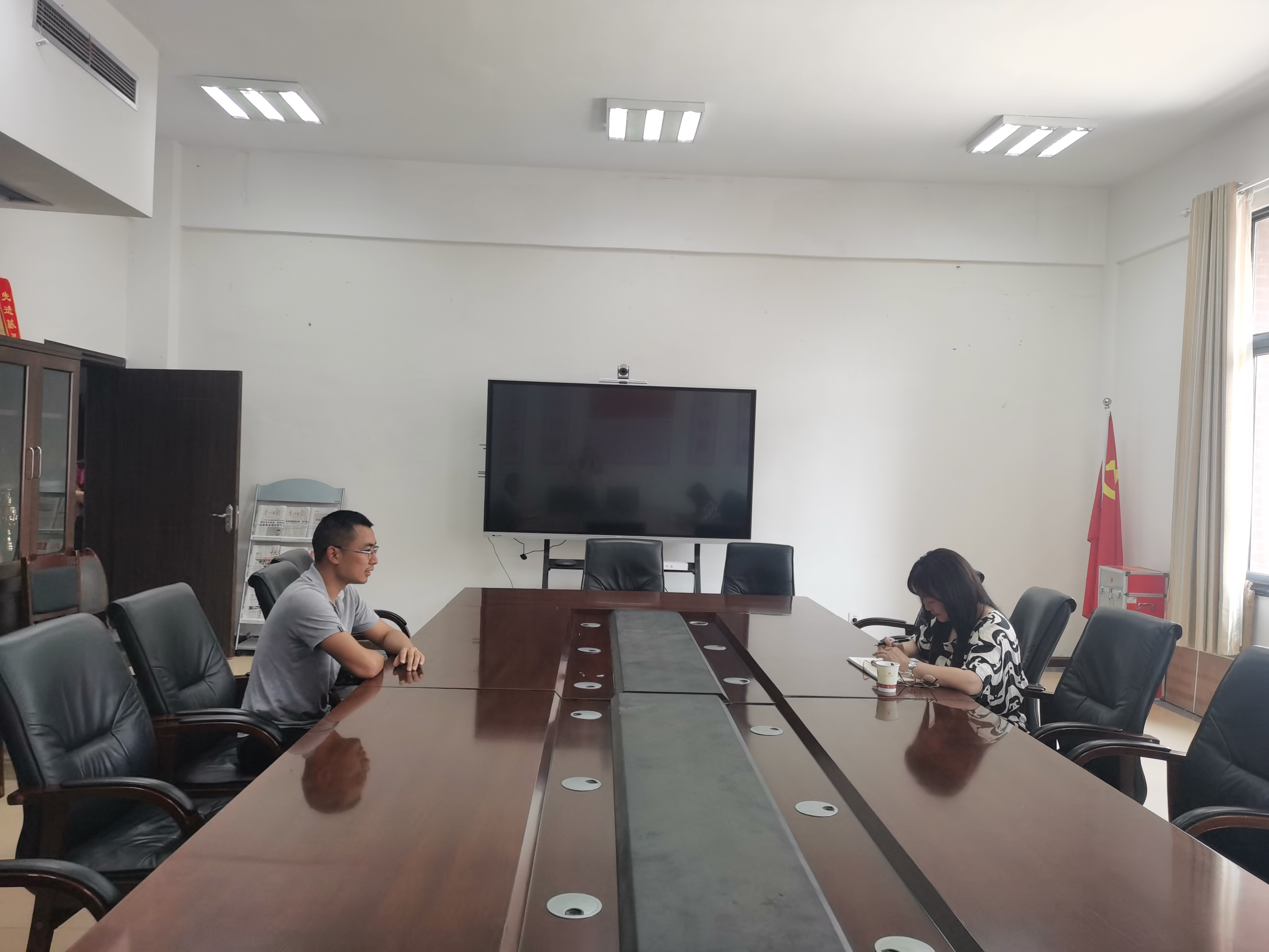 最后,肖小虹与青年教师邓兵进行了交流,对邓兵老师的教学、科研、学习、生活等方面进行关切询问,并对百合小说