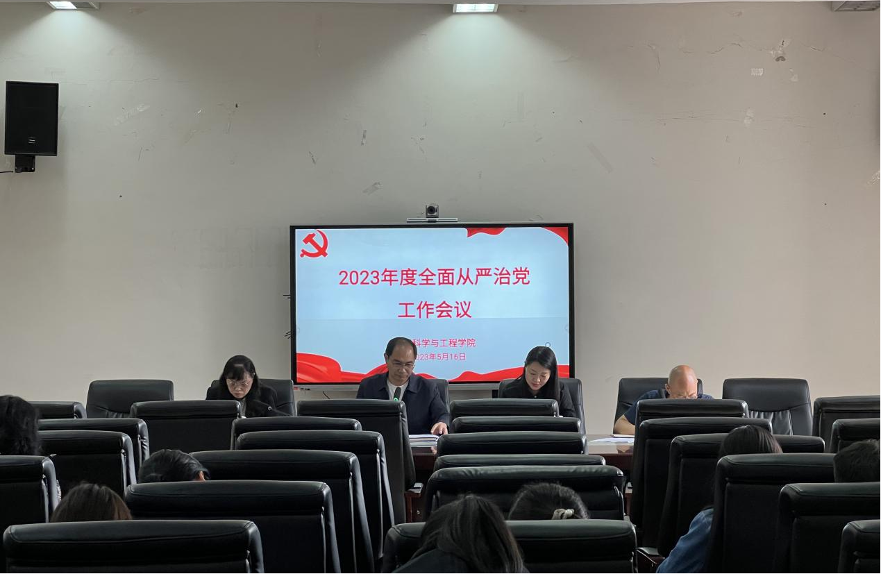 在正德楼301会议室召开2023年上学期全面从严治党工作会,学院全体教职工参会。