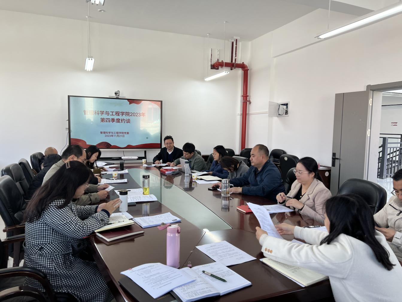 2023年第四季度集体约谈会在文溯楼509会议室召开,党委书记邵新顺对学院全体科室负责人、系(副)主任、党支部书记进行了预防提醒集体约谈。