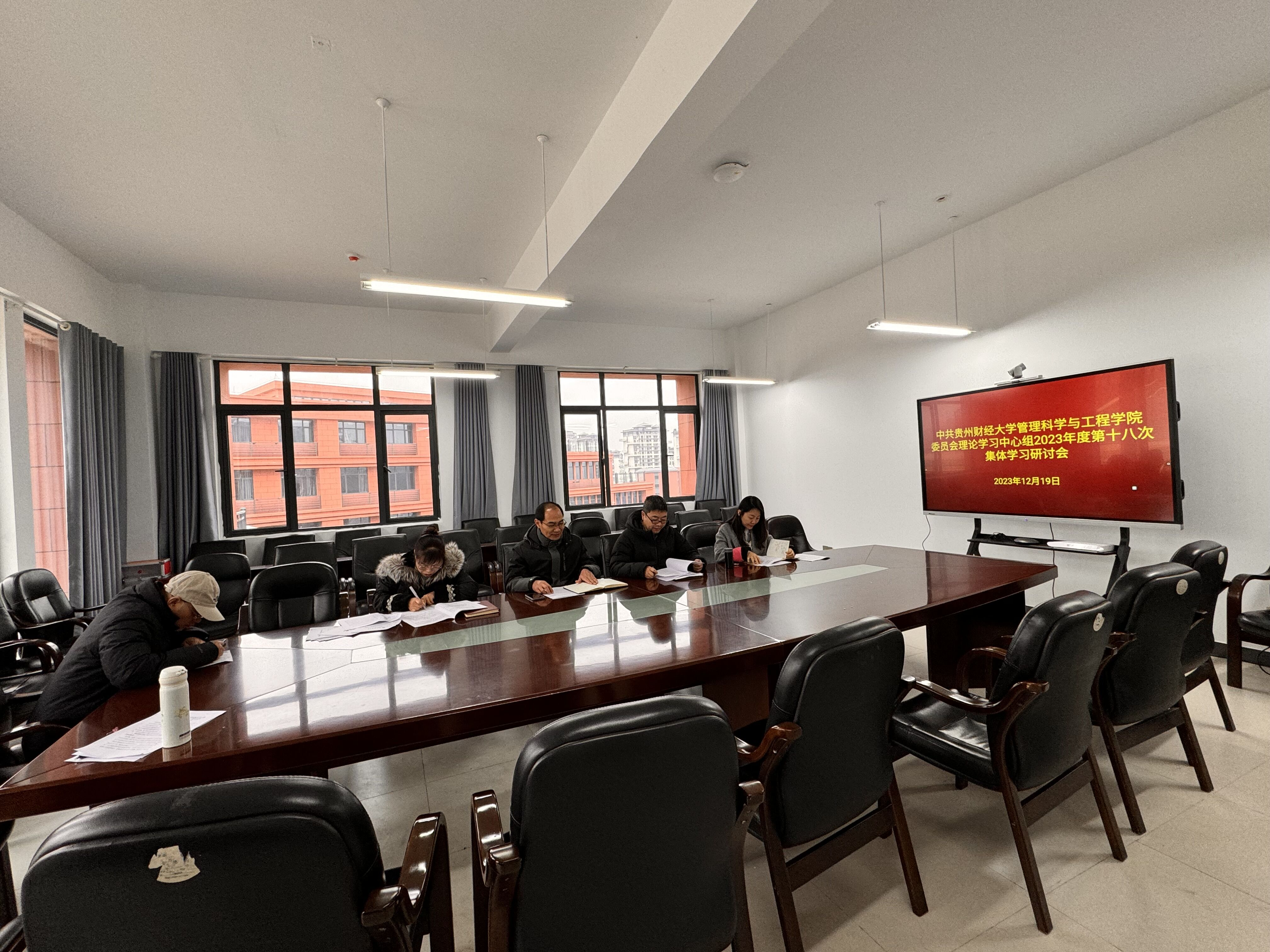 党委理论学习中心组2023年度第十八次集体学习研讨会在文溯楼509会议室召开。参加会议的有学院党委书记邵新顺,党委副书记高艳妮,党委委员、副院长魏媛,院长郭长睿、贵州煤炭经济与管理研究院副院长李恩东列席会议,会议由邵新顺主持。
