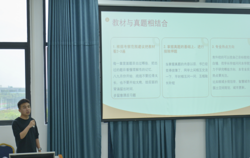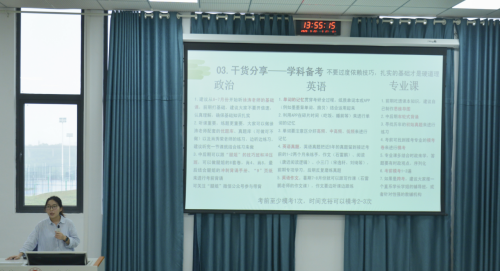 在经验分享环节,何鹏瑶以“时间轴”形式梳理备考全流程,重点分享专业课复习策略与公共课提分技巧,强调“真题精研+思维导图+错题复盘”的高效学习方法,并推荐实用备考工具与资源平台。