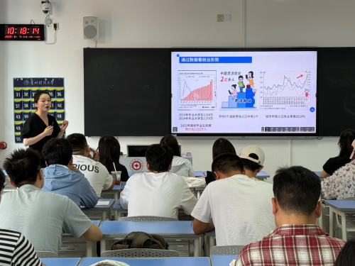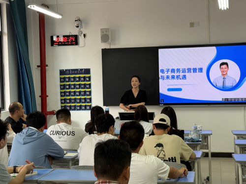 讲座中,孔祥兰书记结合自身丰富的行业经验,从贵州省电子商务发展现状切入,围绕市场需求与职业选择、有效简历的撰写技巧、面试技巧与常见问题、持续教育与职业成长、电子商务运营管理之政策法规、跨境电商大赛宣讲等多个核心板块,系统阐述了电商运营管理的核心逻辑与未来机遇。她以“神秘箱子”互动环节引出数据洞察,通过对比2000-2023年全国高校毕业生人数及就业形势,直指当前青年群体面临的“孔乙己文学”焦虑现象——“学历贬值”背后折射出的是职业规划与市场需求的错位。她强调:“新时代青年需以‘脱下长衫’的勇气正视职业选择,将个人发展融入乡村振兴、数字经济等国家战略,在电商赋能的广阔天地中实现价值。”