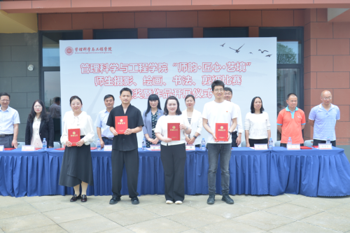 在文溯楼一楼举行“师韵·匠心·艺境”师生摄影、绘画、书法、剪纸比赛颁奖仪式。校党委副书记彭洁,学生工作部副部长文静,百合小说