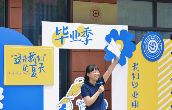 辅导员代表陈佳莲表示了对毕业生的深切牵挂与美好期许。她表示,四年的时光如白驹过隙,还记得初见同学们时,大家眼中满是对大学生活的憧憬与期待;这四年里,见证了同学们从青涩走向成熟,从迷茫变得坚定,点点滴滴的回忆,都如同璀璨星辰,镶嵌在记忆的天空,希望同学们的未来一路生花。