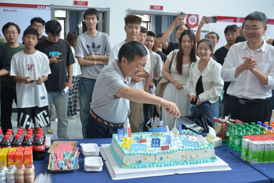徐大佑副校长在活动中发表了热情洋溢的讲话。他语重心长地对毕业生们提出殷切期望,希望同学们在未来的征程中,能够锚定目标,以勤奋为桨,在知识的海洋中奋力划行;以坚持为帆,在人生的道路上乘风破浪,勇创佳绩。随后,他亲自为象征着美好未来的蛋糕切下第一刀,并将蛋糕分发给在场的学子们,将满满的祝福化作沁人心肺的香甜,传递到每一位毕业生的心中。