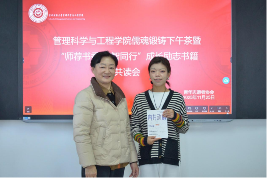 与会学生积极分享读书感悟。认为本次共读分享了实用的阅读方法与选书技巧,破解了“选书难”、“阅读低效”等问题,搭建了清晰的阅读框架,让每一次阅读都能学有所获、思有所得。活动中,徐筑燕、余开远老师也将自己反复研读的书籍亲手赠送给学生,这一本本承载希望的书籍是阅读从“个人探索”变为“集体成长”的寄托,也是联结师生友谊的纽带。