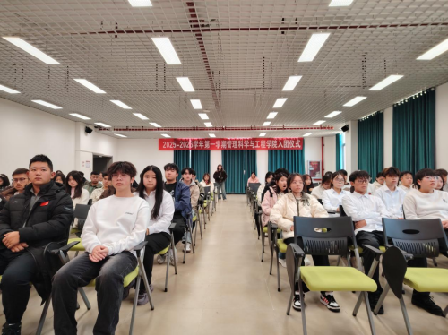 2025年新团员入团仪式在文正楼102隆重举行,院党委副书记张颖、傅璟,2025年新发展团员以及各班级团支部代表参加仪式。