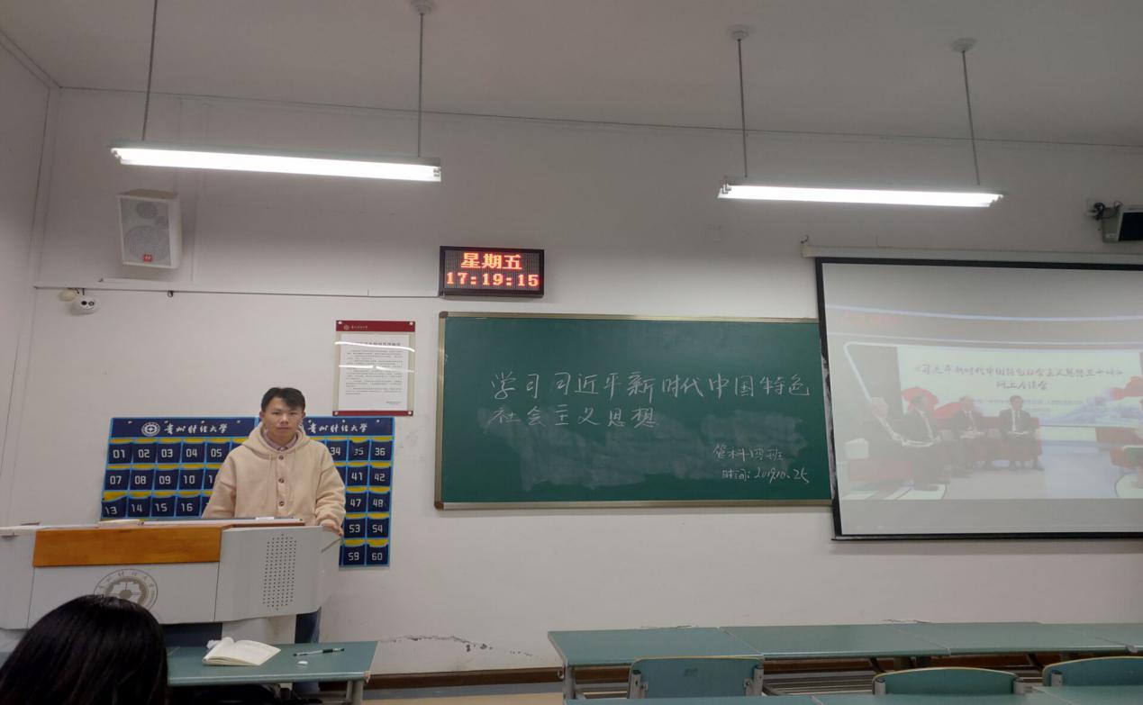 19级四班全体成员于2019年10月25日在博学楼4-5教室开展学习“习近平新时代中国特色社会主义思想”活动,此次活动由周道主持。